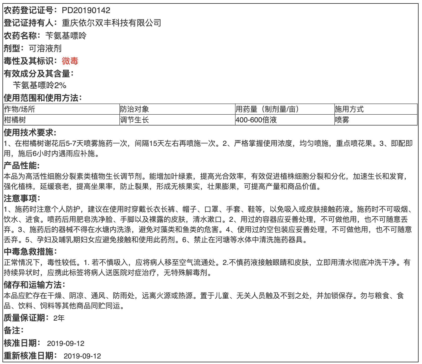 2%苄氨基嘌呤可溶液剂1