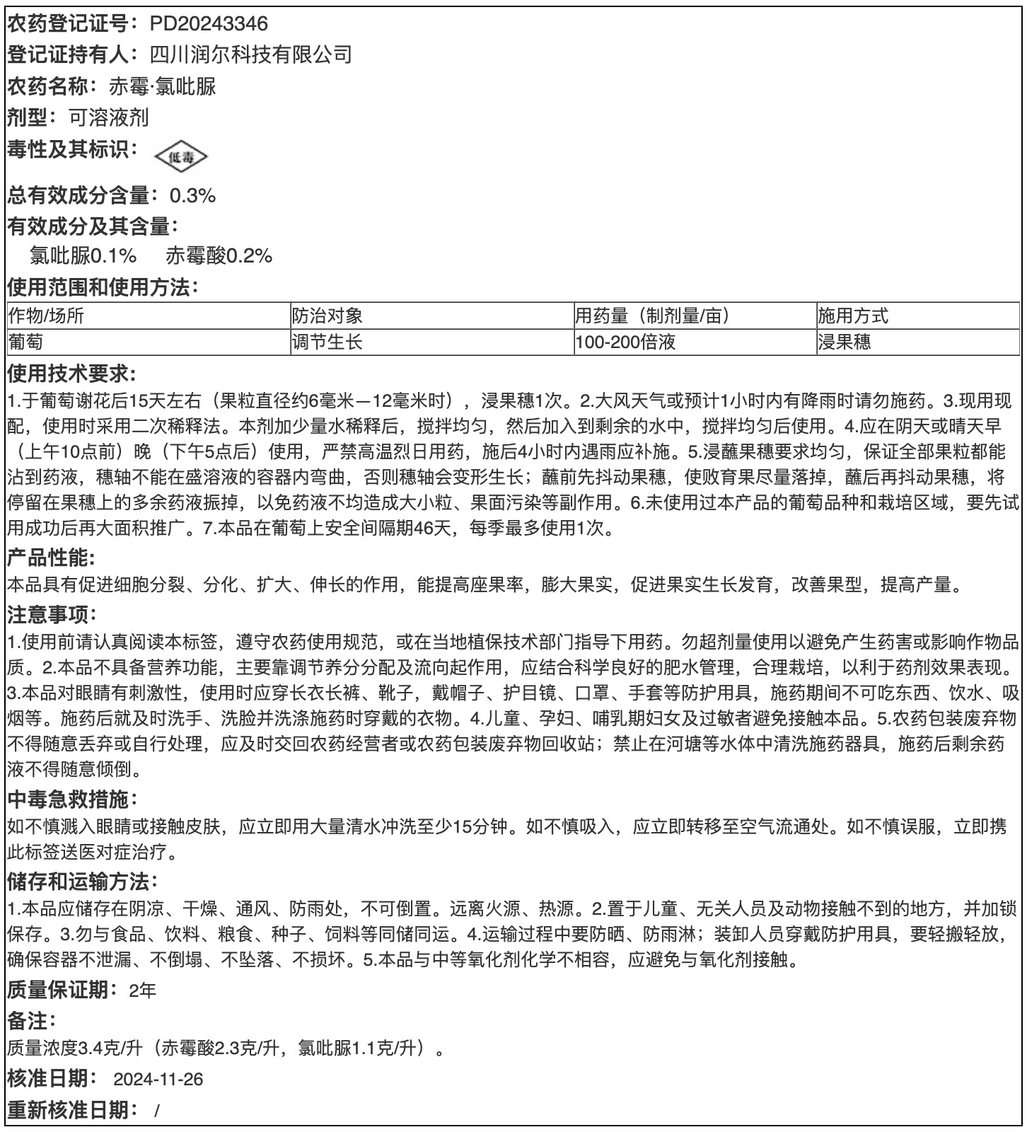 0.3%赤霉·氯吡脲可溶液剂网签