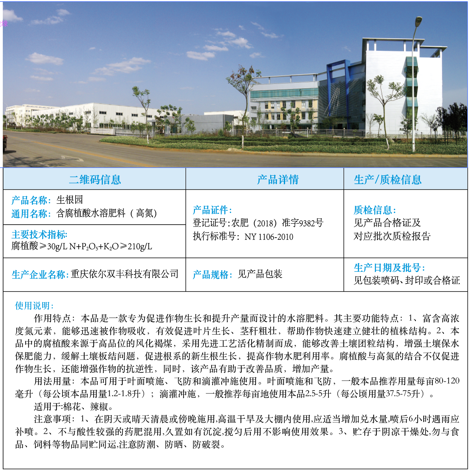 生根园(含腐殖酸水溶肥料 )高氮 说明书ml
