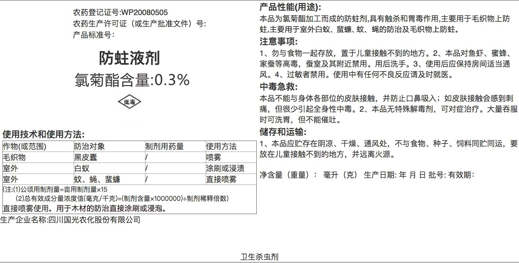 防蛀液剂说明书