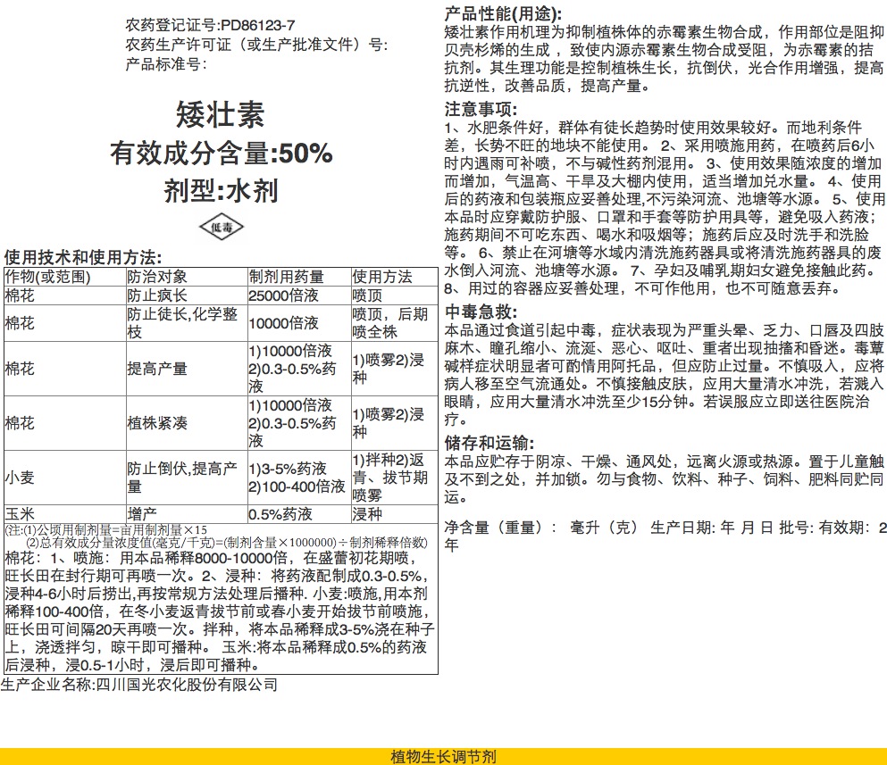 50%矮壮素说明书