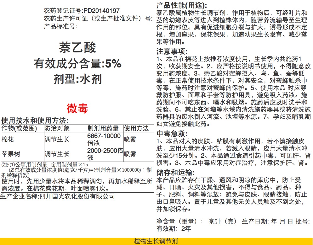 5%萘乙酸旧证说明书