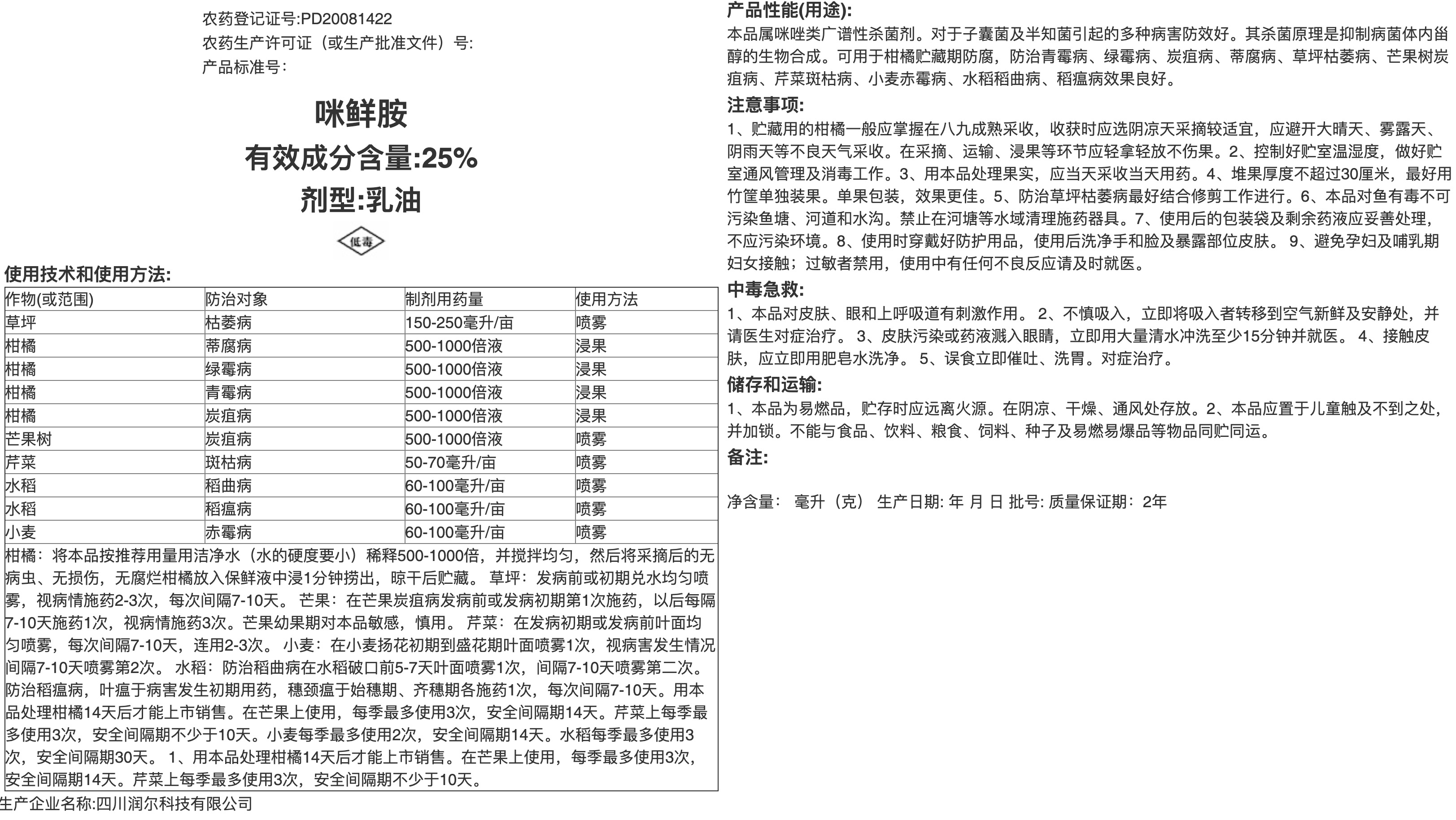 咪鲜胺说明书