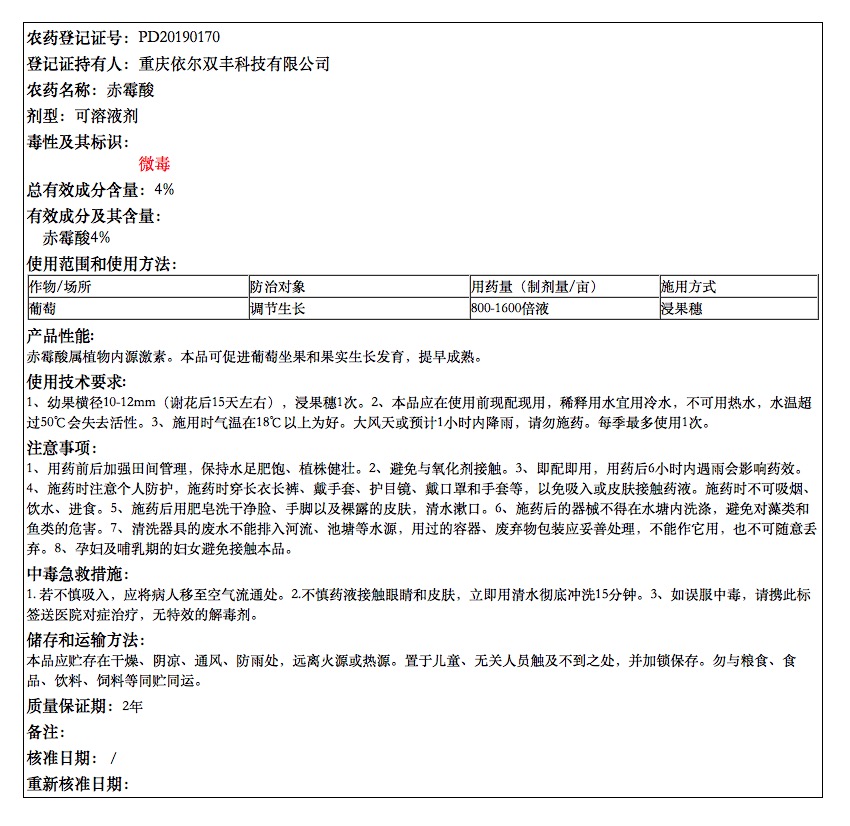 依尔4%赤霉酸说明书