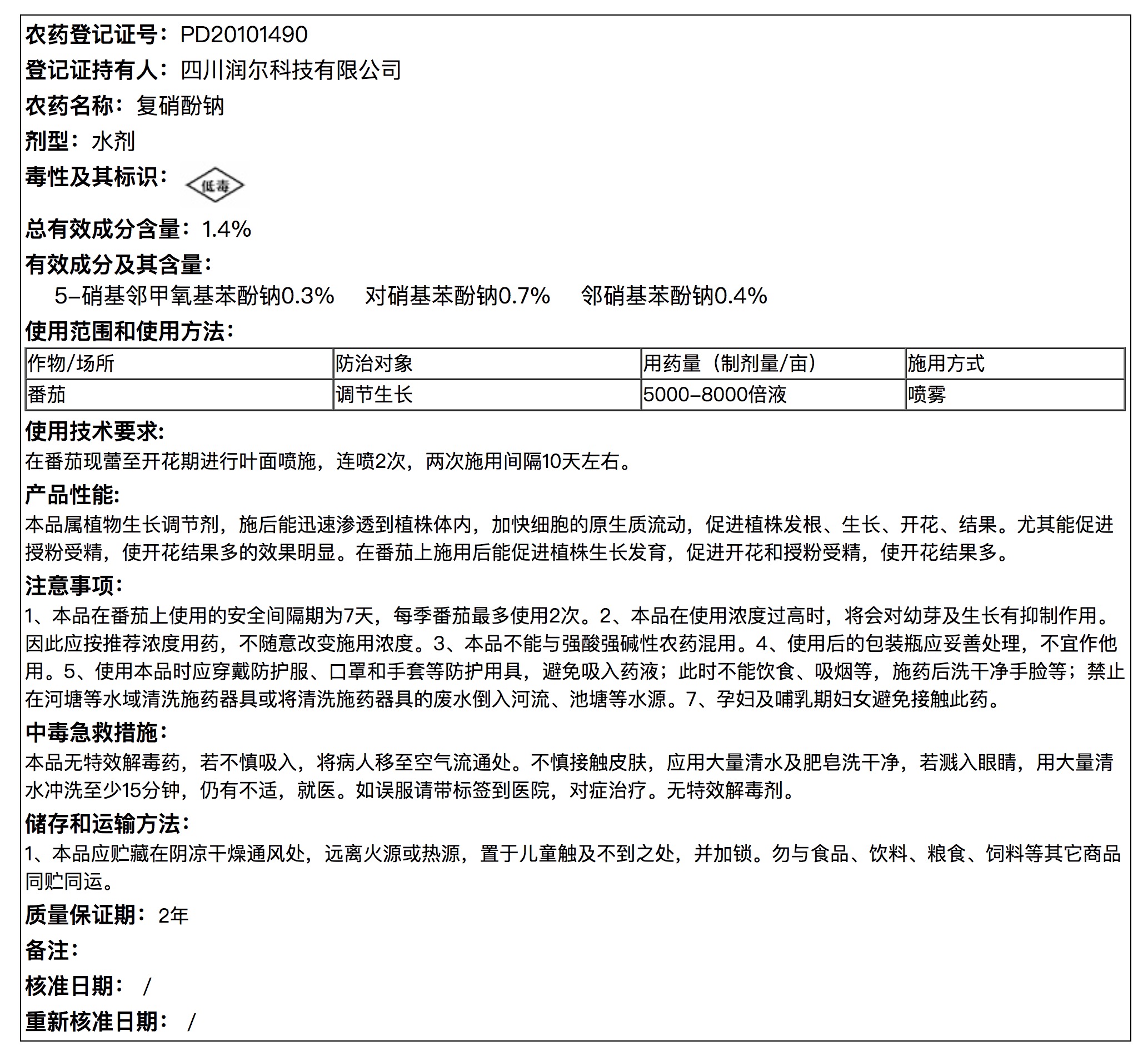 复硝酚钠新说明书
