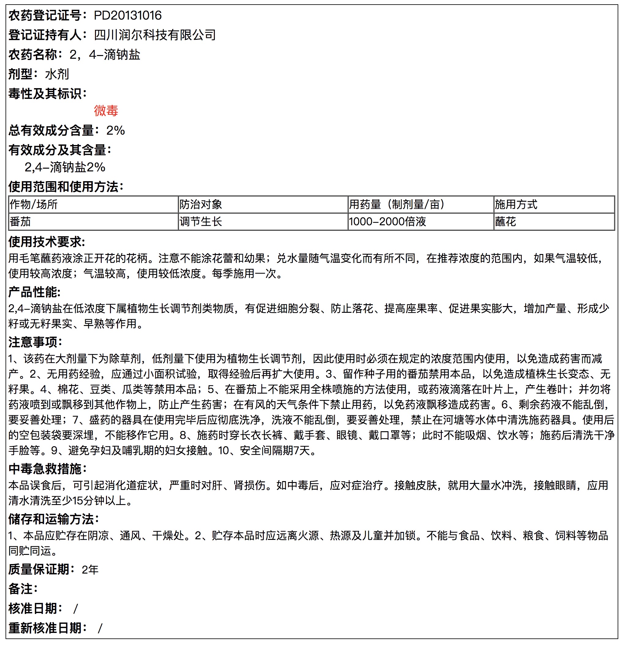 2%国光2,4-滴钠盐水剂说明书关联信息