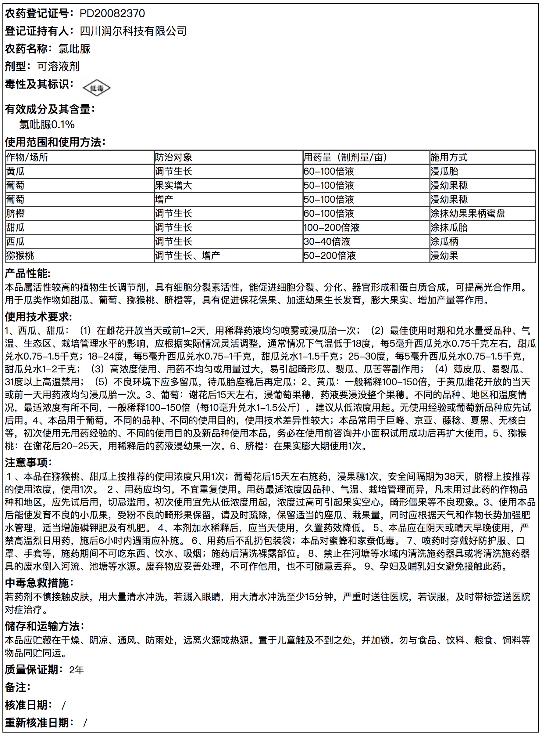 0.1%氯吡脲可溶液剂说明书
