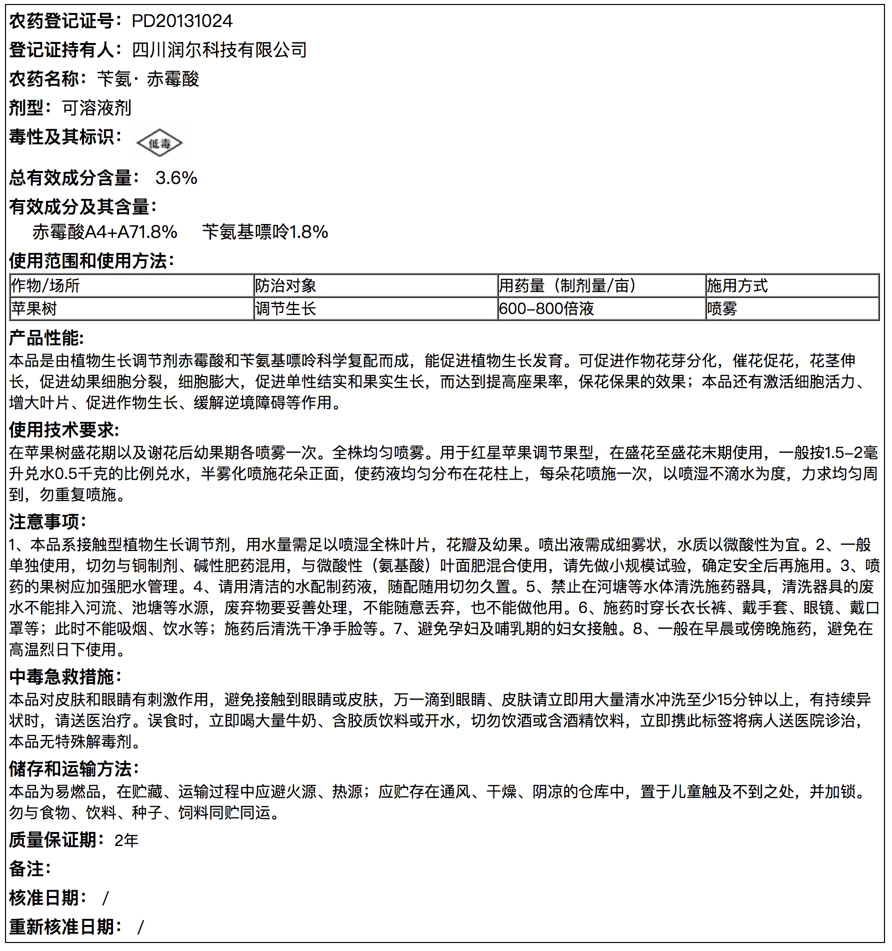 3.6%苄氨·赤霉酸可溶液剂说明书