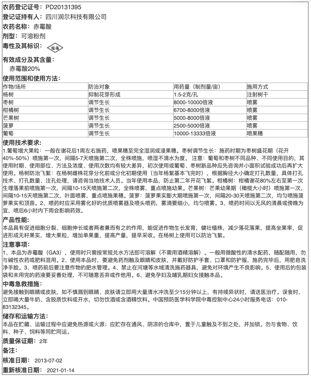 20%赤霉酸可溶粉剂