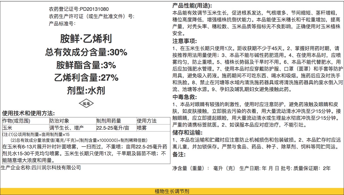 30%胺鲜乙烯利(委托)说明书