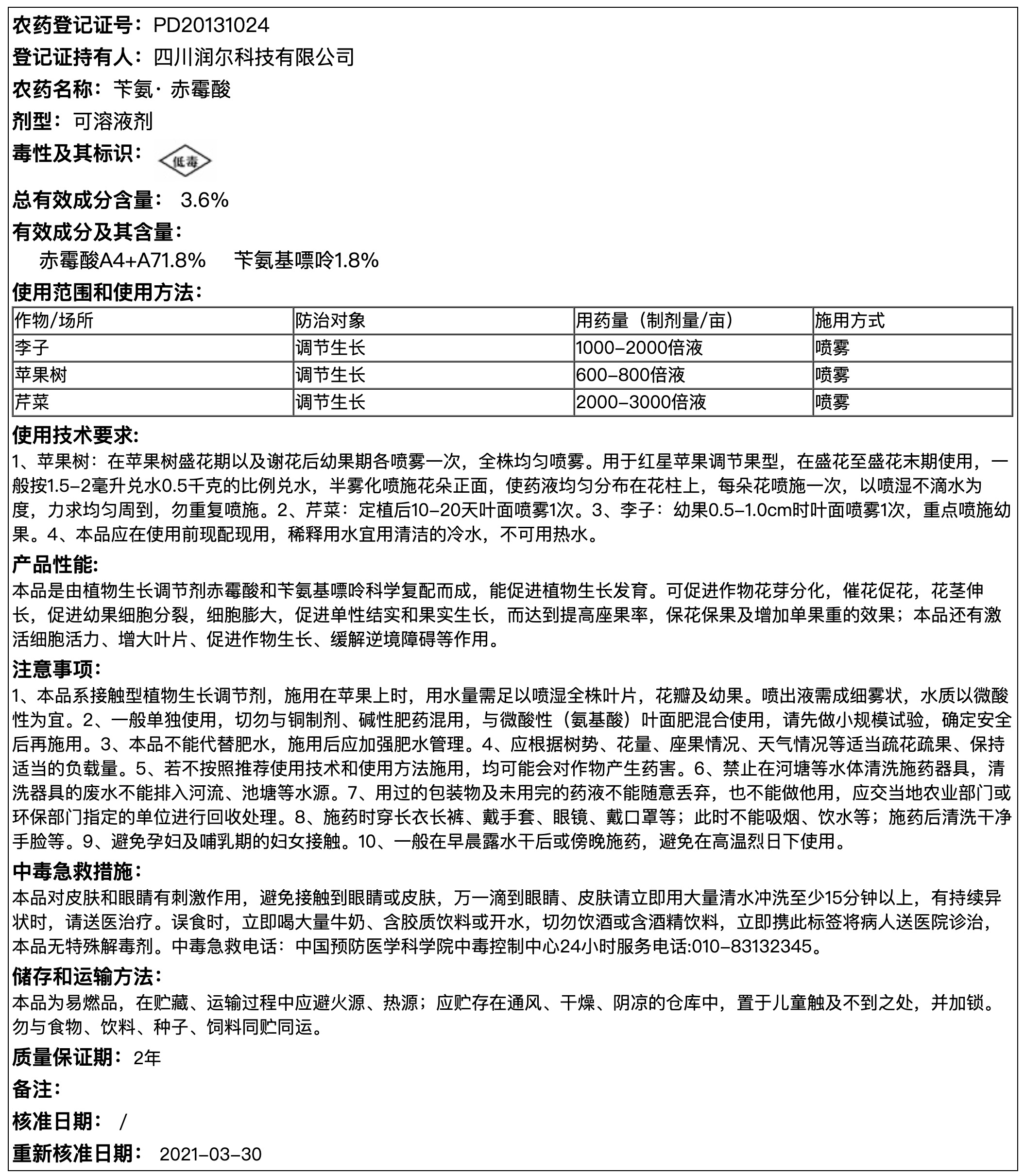 3.6%苄氨·赤霉酸可溶液剂