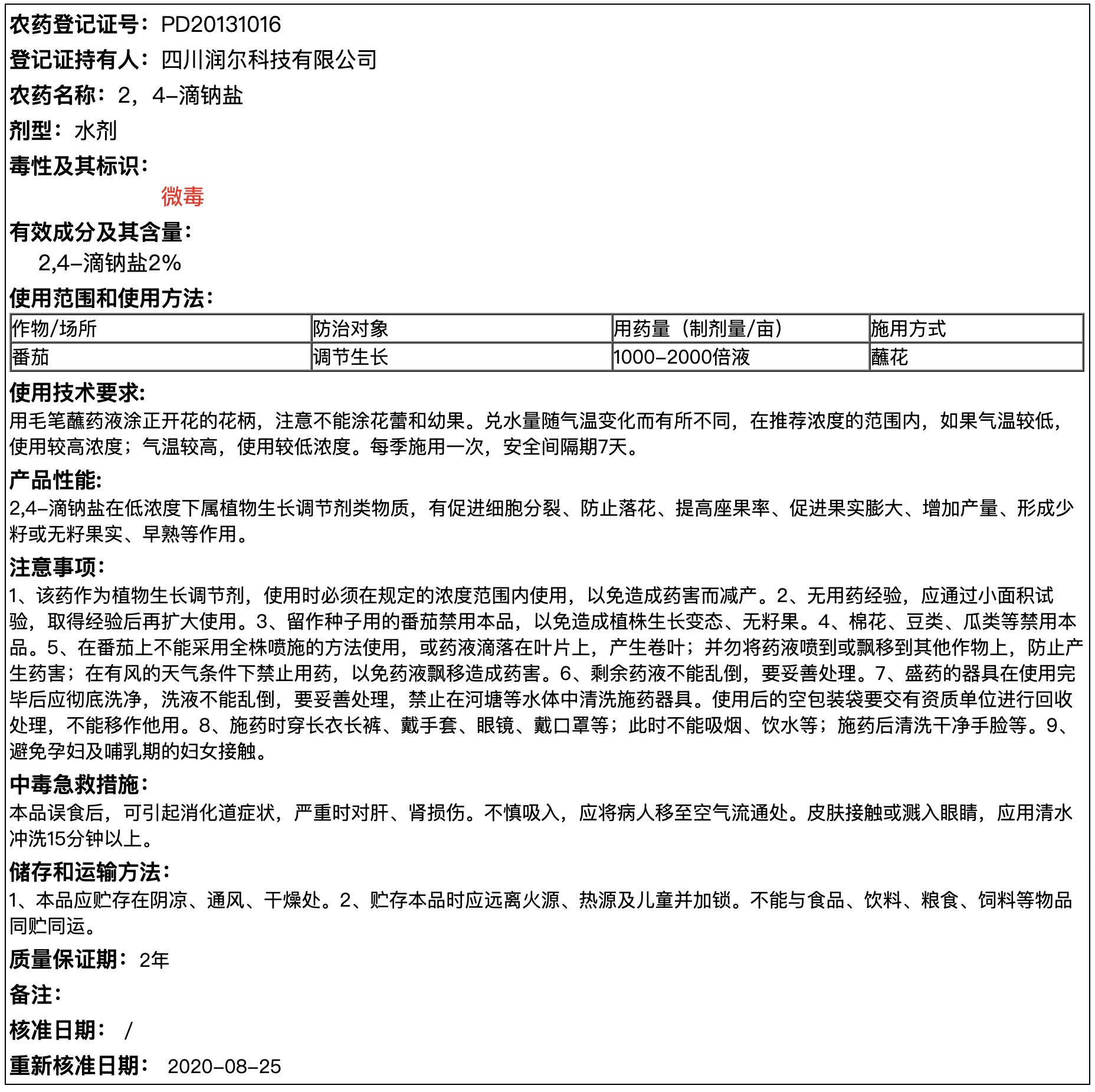 2%国光2,4-滴钠盐水剂说明书关联信息