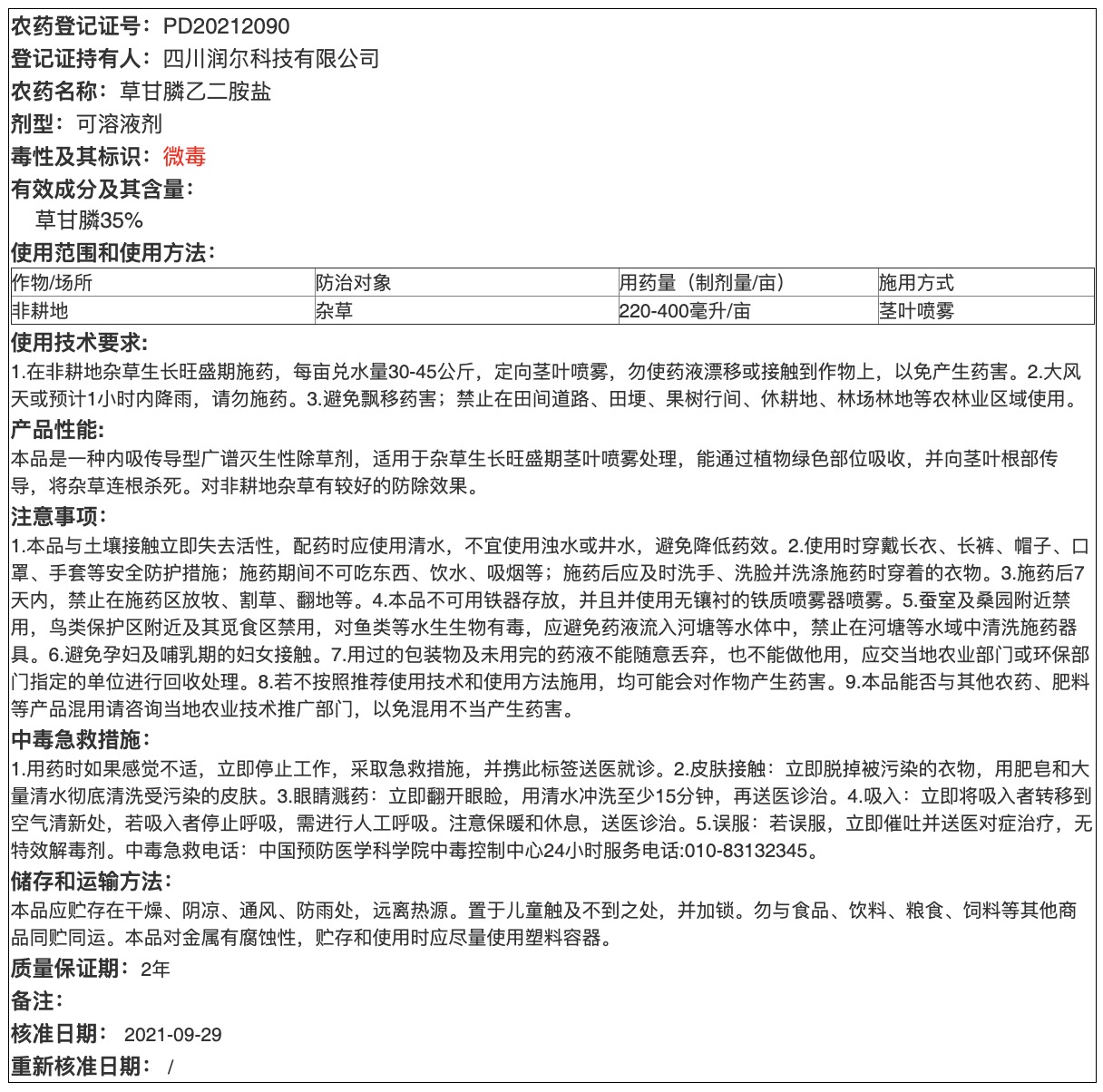 草甘膦乙二胺盐