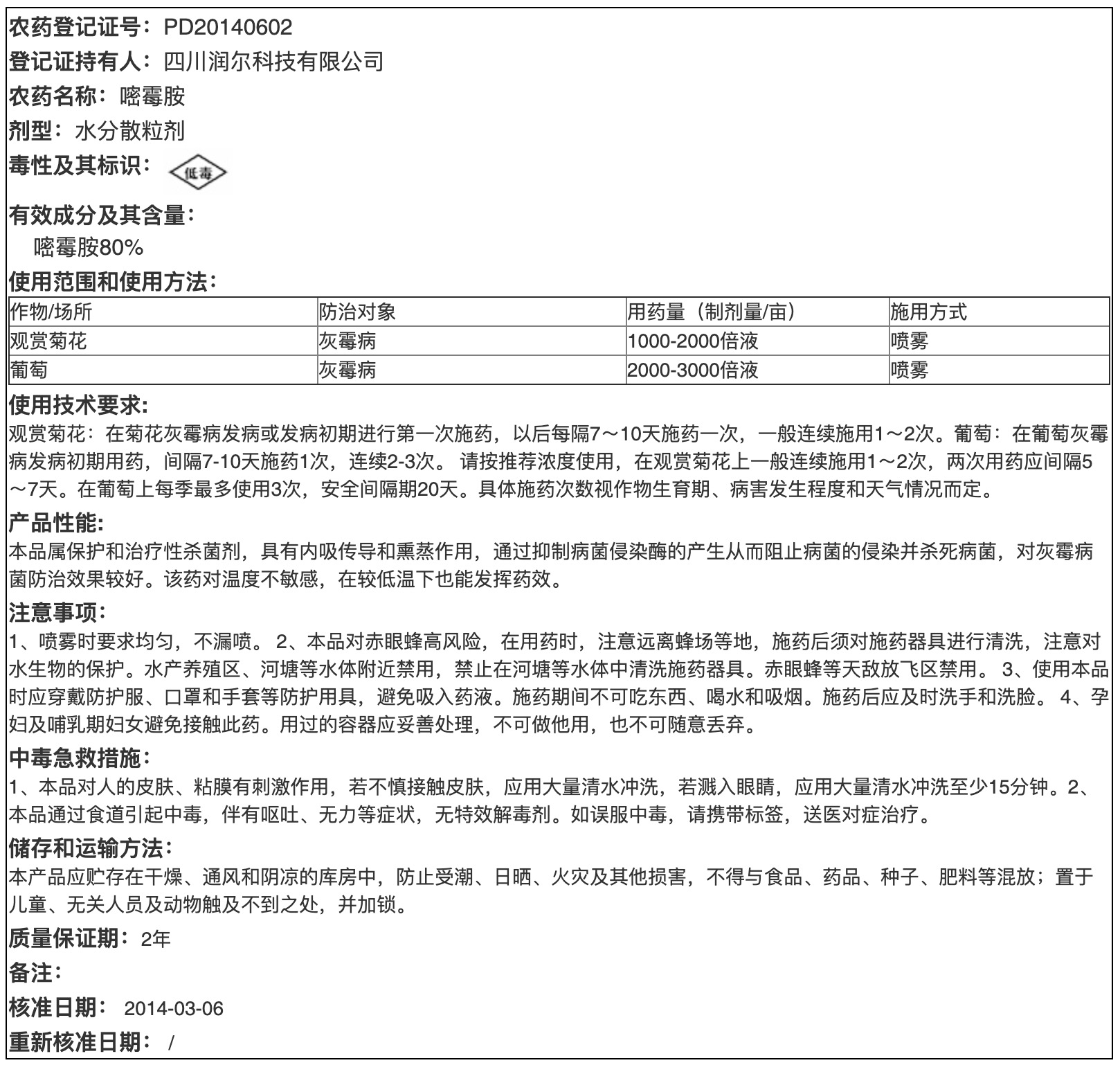 80%嘧霉胺水分散粒剂通用说明书二维码关联信息