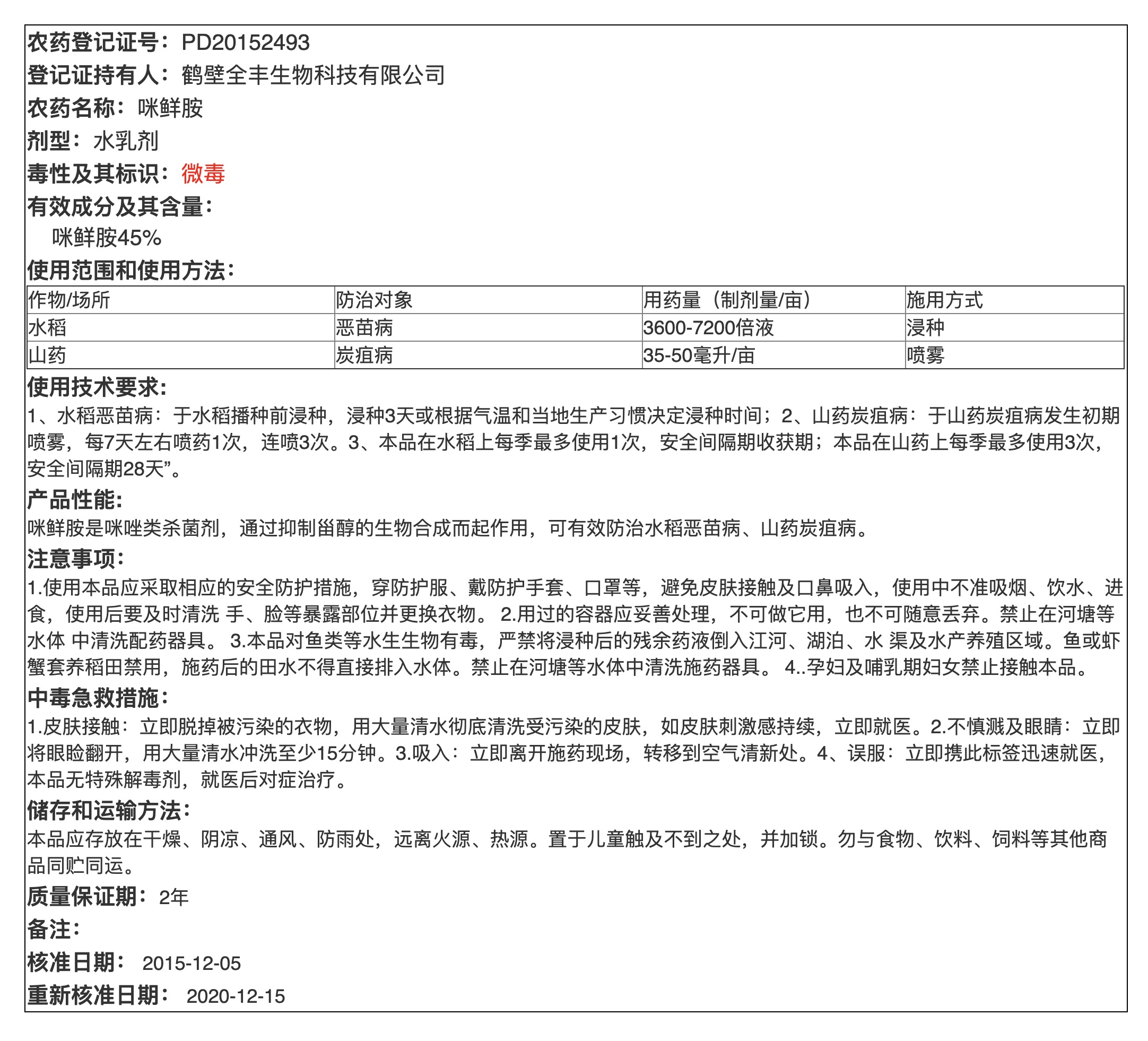 45%咪鲜胺水乳剂网签