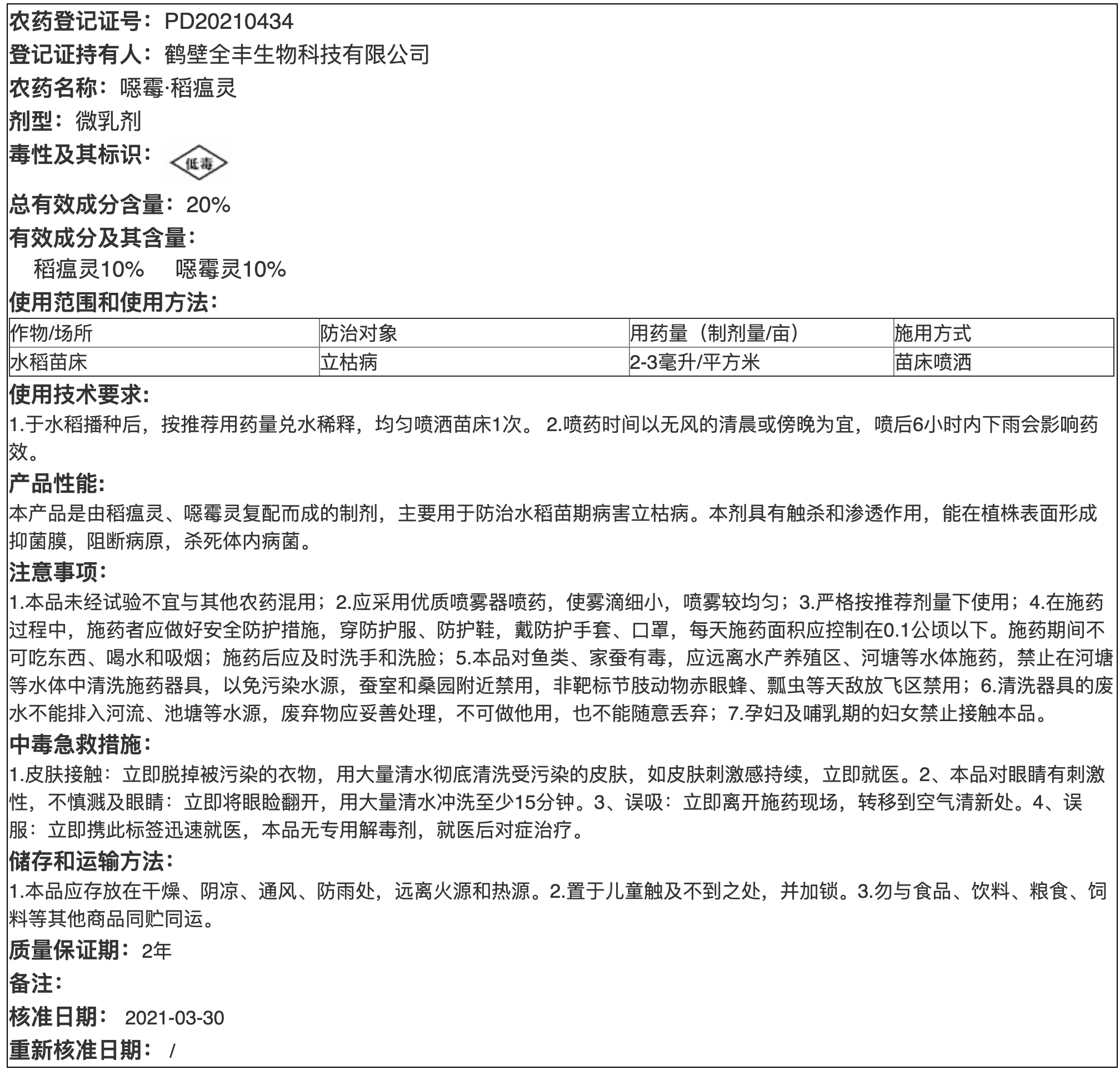 20%噁霉·稻瘟灵微乳剂说明书2