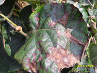 (2)发病前期和初期,用叶面肥喷雾,增加叶片的叶绿素含量,用三十烷醇喷雾增加叶片的厚度,较少病菌侵染。发病后,用杀菌剂防治,杀菌剂要轮换使用,预防产生抗性。