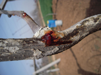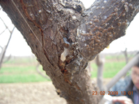 (3)春季管理:枝蔓发病,剪除枝条;主杆发病,刮除病斑,涂抹杀细菌药剂。若发病过于严重,将挖除植株,当场烧毁。