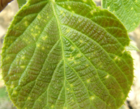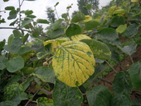 猕猴桃病毒病有猕猴桃花叶病。。表现为叶部有鲜黄色不规则线状或片状斑,病健部交界明显,叶脉和脉间组织均可以发病,严重影响叶片的光合功能。