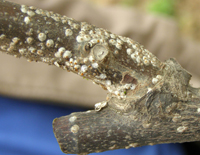 属于同翅目,体外有蜡质介壳。卵通常埋在蜡丝块中、雌体下或雌虫分泌的介壳下。 介壳虫繁殖能力强,一年发生多代。卵孵化为若虫,经过短时间爬行,营固定生活,即形成介壳。介壳虫抗药能力强,一般药剂难以进入体内,防治比较困难。