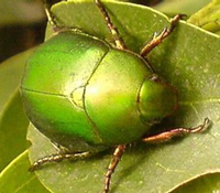 属于鞘翅目(特点前翅坚硬,后翅膜质),是咀嚼式口器,所以说被害植物有缺口、孔洞灯机械损伤,严重时可以吃光叶片,咬断根茎。常在傍晚至晚上10时咬食最盛。常见的有铜绿金龟子、朝鲜黑金龟子、茶色金龟子、暗黑金龟子等。多在夜间活动,有趋光性。