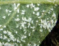 以成虫、若虫群集在叶背、嫩梢上刺吸危害,栖息时头翘起,有时可见数十头群集在新梢上,排列成一条直线;引起被害植株发生煤污病或嫩梢萎缩,畸形等,严重影响植株的生长和发育。