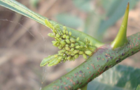 主要危害幼嫩组织,影响组织生长,严重时造成树势衰弱、大量落果。