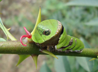 幼虫食芽、叶,初龄食成缺刻与孔洞,稍大常将叶片吃光,只残留叶柄。苗木和幼树受害较重。