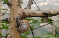 腹足纲,主要危害叶片和树皮,叶片常被其吃成缺刻,枝条皮层也常被取食,花椒果实取食后形成凹坑状。
