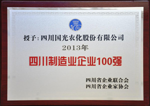 2013年11月19日,四川省企业联合会、四川省企业家协会在成都金牛宾馆召开2013四川企业100强、四川制造业企业100强、四川服务业企业50强发布暨企业发展峰会,四川国光农化股份有限公司荣获四川制造业企业100强。