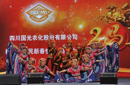 2014年2月14日(正月十五),由中共简阳市委、简阳市人民政府主办,简阳市经济和信息局承办的《我的中国梦、文化进万家》2014新春广场文化周活动,在简阳市河东文化广场举行,我公司员工文艺节目舞蹈《梦在国光》、《燃烧节日的圣火》参加演出。员工表演时欢快的舞蹈动作和热烈高亢的音乐旋律将整个活动不断推向高潮,给在场领导和全体观众留下了深刻的印象。充分展示了公司员工积极向上的精神面貌和企业蒸蒸日上的发展前景。图为公司员工文艺节目在演出现场。