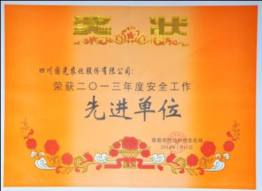 2014年1月15日,简阳市经济和信息化局召开《市经信系统2013年度安全工作总结暨2014年度安全工作会议》。会上,对安全生产工作方面做出的成绩的先进单位进行了表彰。我公司荣获2013年度安全工作先进单位。