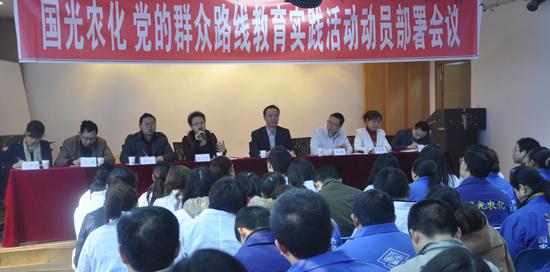2014年3月19日,公司党支部召开《党的群众路线教育实践活动动员部署大会》。公司董事、副总经理、党支部书记何鹏做了动员讲话。 会议要求,按照党的群众路线教育实践活动“照镜子、正衣冠、洗洗澡、治治病”的总要求,通过学习教育、听取意见,查摆问题、开展批评,整改落实、建章立制,本次活动要求结合国光品牌建设、国光第一次创新大会精神、国光团队建设,做到两手抓、两不误、两促进,为做好国光农化的质量、研发、生产、销售、品牌等各项工作提供有力保障。