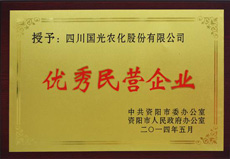 2014年5月15日,在资阳市召开县域经济工作暨民营经济发展大会上,国光荣获“优秀民营企业”称号。 会上市委书记李佳讲话强调:各级党政部门要创优发展环境,牢固树立“环境是生产力、环境是安全阀、环境是战略资源”的理念,强化政策支持、强化要素保障、优化政务服务,更多从体制、机制、政策层面解决企业发展的问题,让企业家们放心、放胆、放手发展。各级党委政府要高度重视并充分发挥民营经济重要作用,给民营企业“定位”,给民营企业家“定心”,给民营企业的发展“定向”,为民营经济提供更广阔的发展空间。