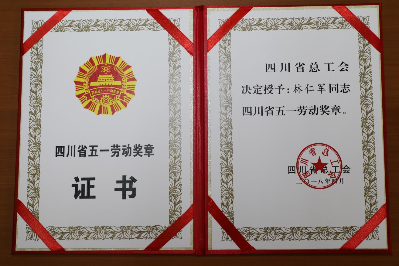 由于工作勤奋努力,成绩突出,林师傅连续十五年被公司评为先进管理人员。2017年更是获得成都市“五一劳动奖章”。