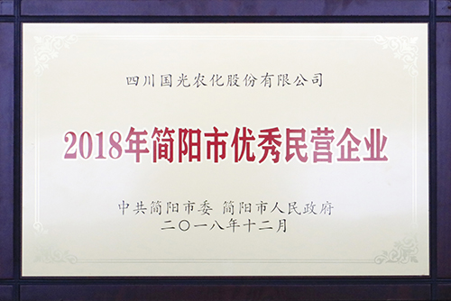 公司被授予“2018年简阳市优秀民营企业”称号