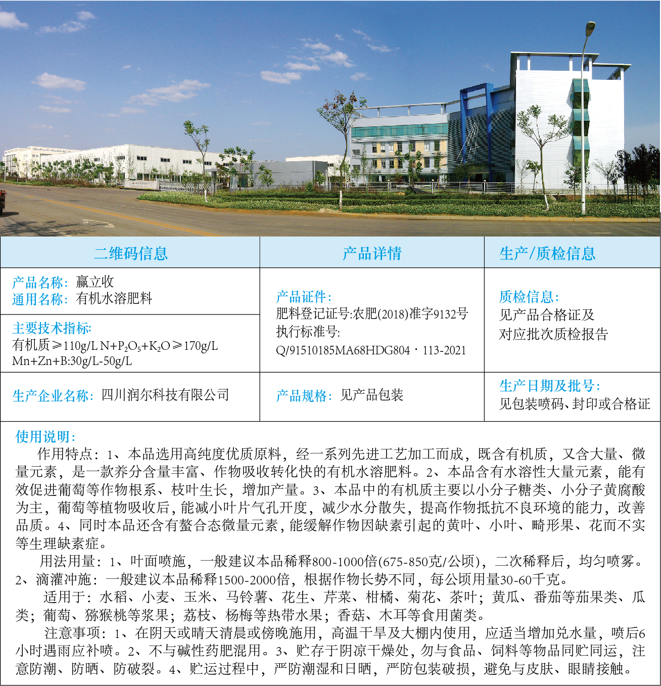 赢立收有机水溶肥料说明书