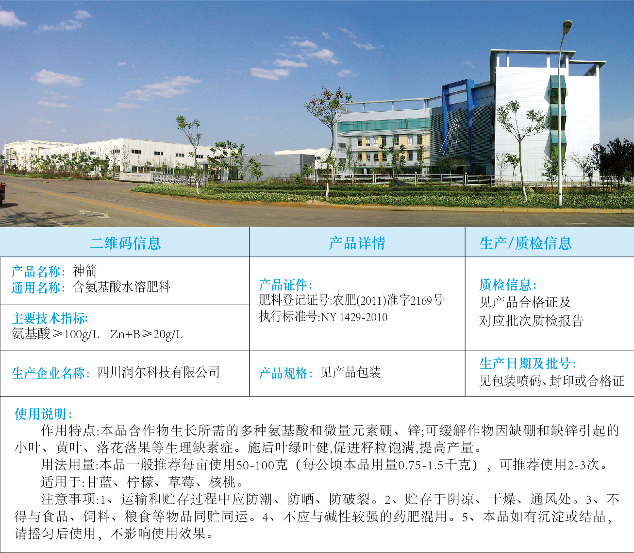 神箭东北定做氨基酸水溶肥料说明书