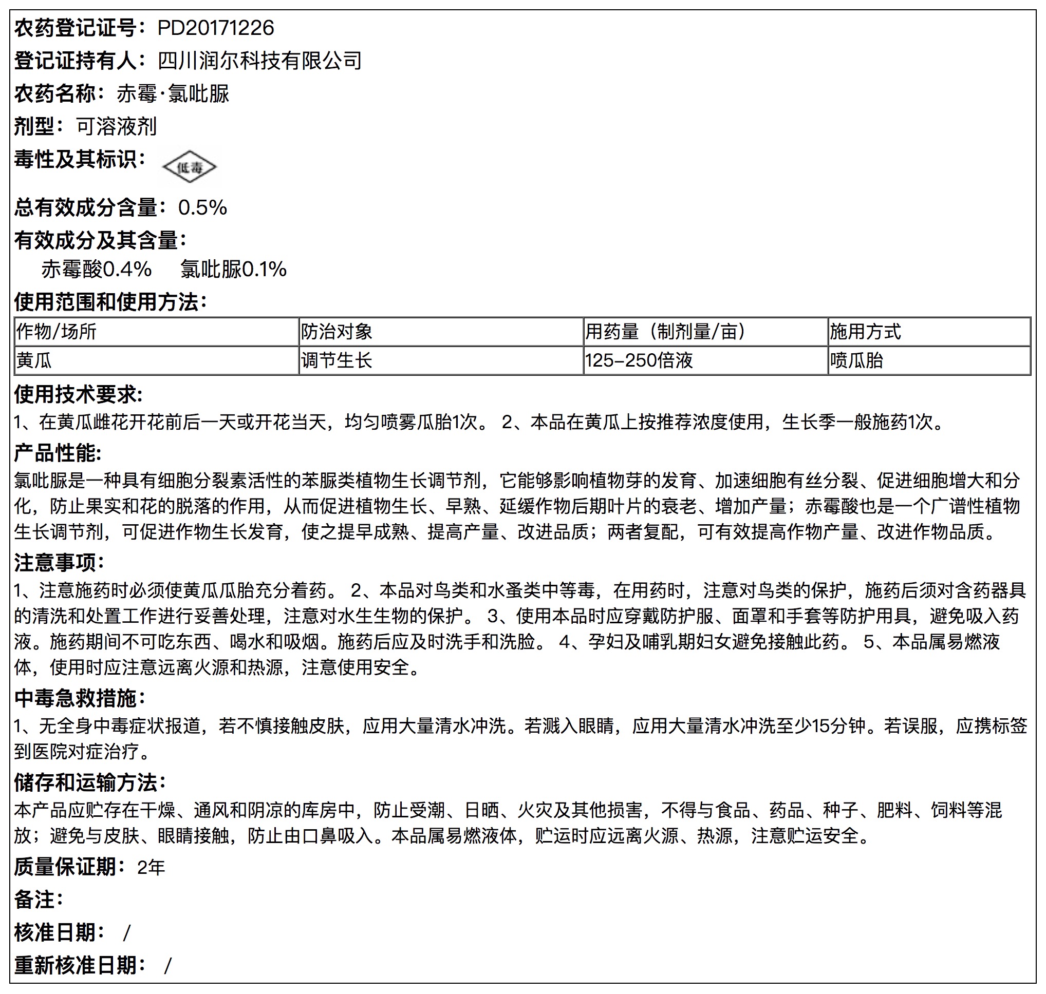 赤霉 氯吡脲 说明书
